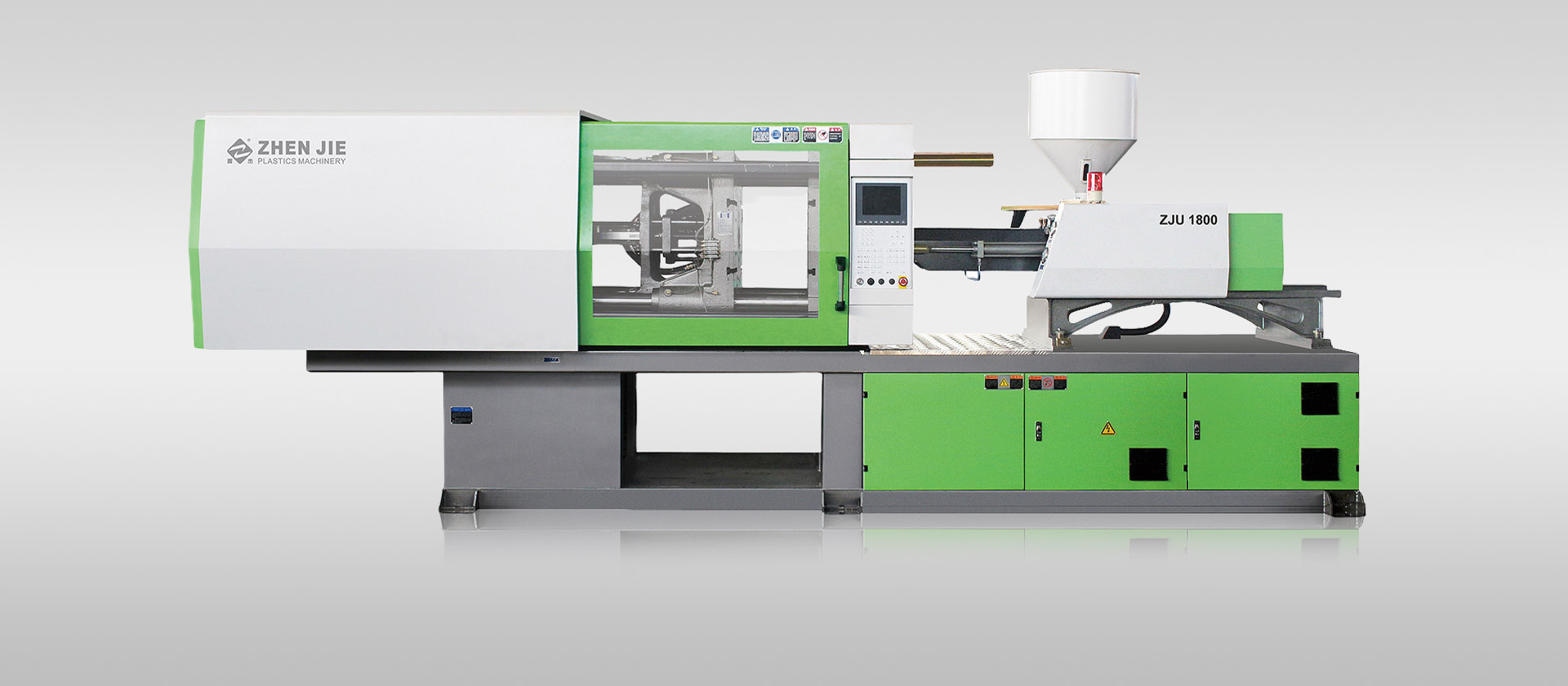 公司自主品牌"震杰"ZJ系列注射量為45-4000Tons,合模力為500-8800KN注塑機及高效節(jié)能比例變量泵系統(tǒng)和電木射出成型機,是集先進科技和市場新需求而研制的優(yōu)質(zhì)產(chǎn)品。適用于生產(chǎn)各類高精度和高強度的塑料制品。產(chǎn)品采用CAD、CAM技術優(yōu)化設計及高精全自動數(shù)控機床加工,各部件均經(jīng)過精密加工或篩選,并采用世界級優(yōu)質(zhì)品牌元件,按照嚴格的工藝要求進行生產(chǎn)、裝配、調(diào)校而成。產(chǎn)品結(jié)構(gòu)新穎,性能穩(wěn)定,高效節(jié)能,備受海內(nèi)外用戶青睞。